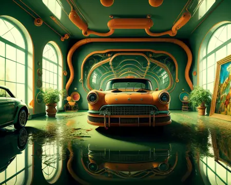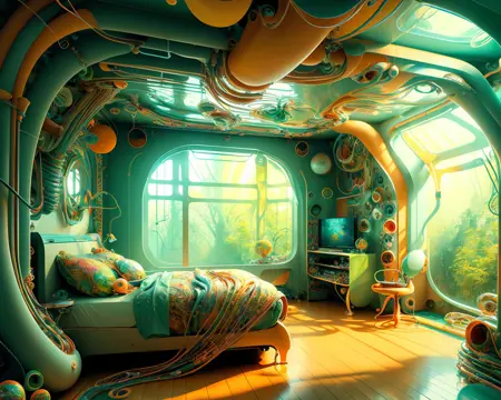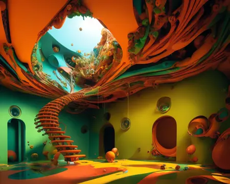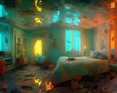 Dreambooth(JP의 레포 로컬)를 사용하여 Midjourney V5로 생성한 약 20장의 "비현실적인 방" 이미지로 훈련되었습니다.