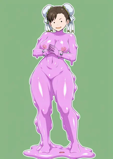 Prompts: DittoUseTransform, pink slime, smiley face, ditto_pokemon, ditto_transformation, ditto_transformation 1girl, dot eyes, gooey, slimey, purple slime,