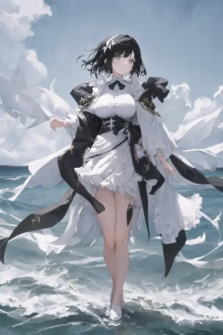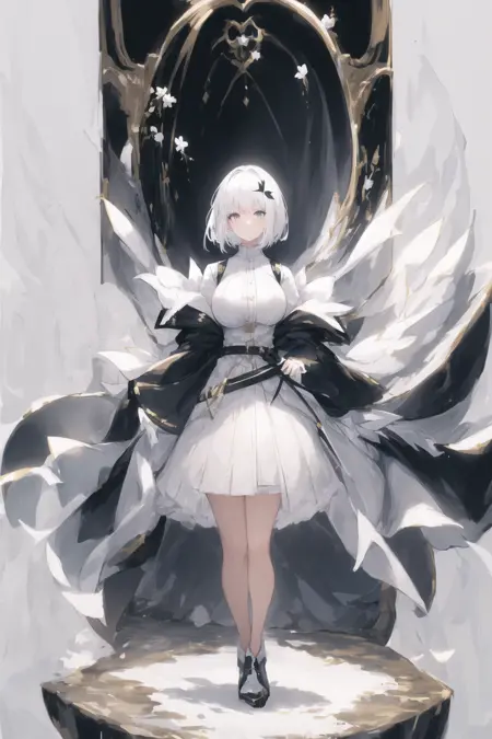 --> プロンプト:white background, originVV, 1girl, white skirt, white uniform, magician
