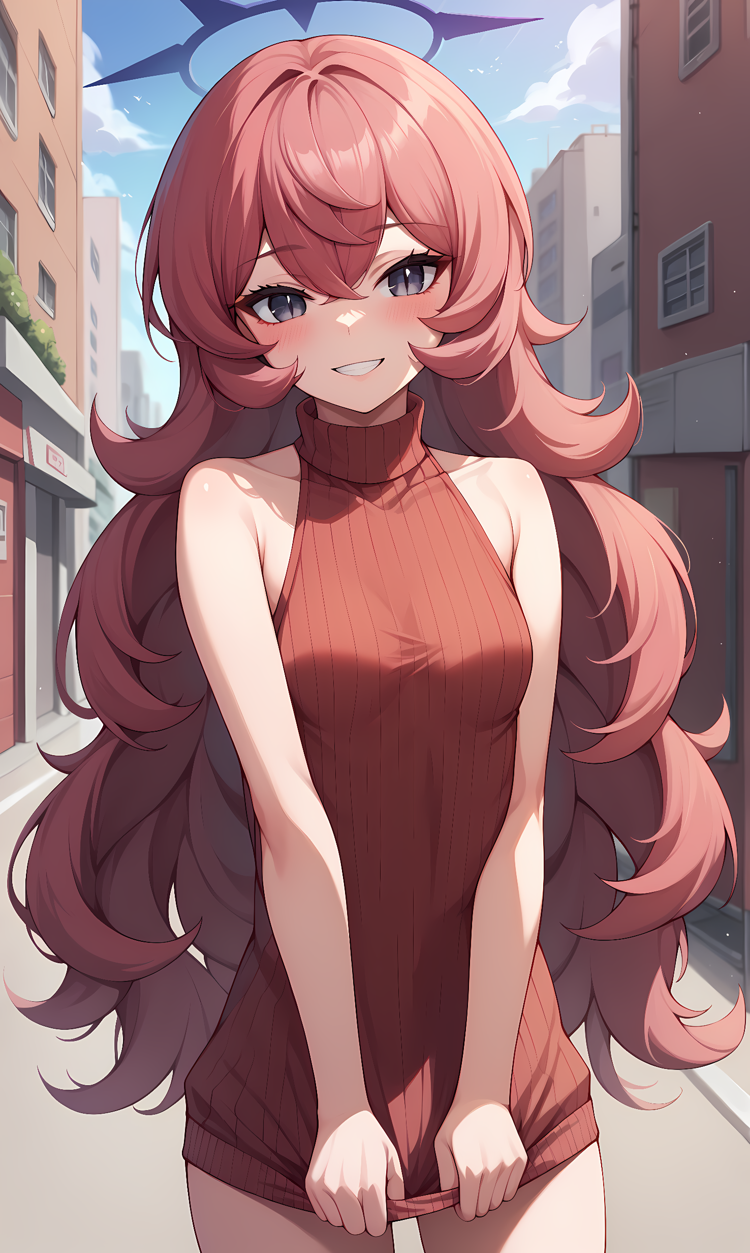 iroha, black eyes, slit pupils, red hair, very long hair, wavy hair, halo