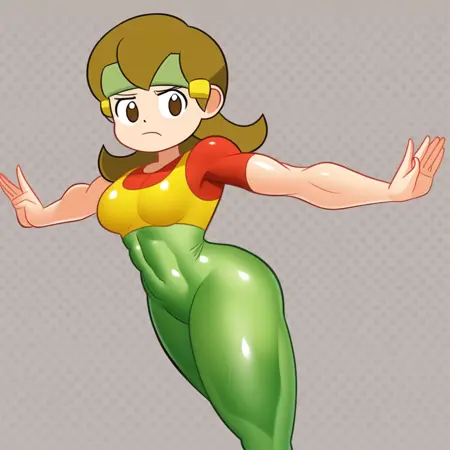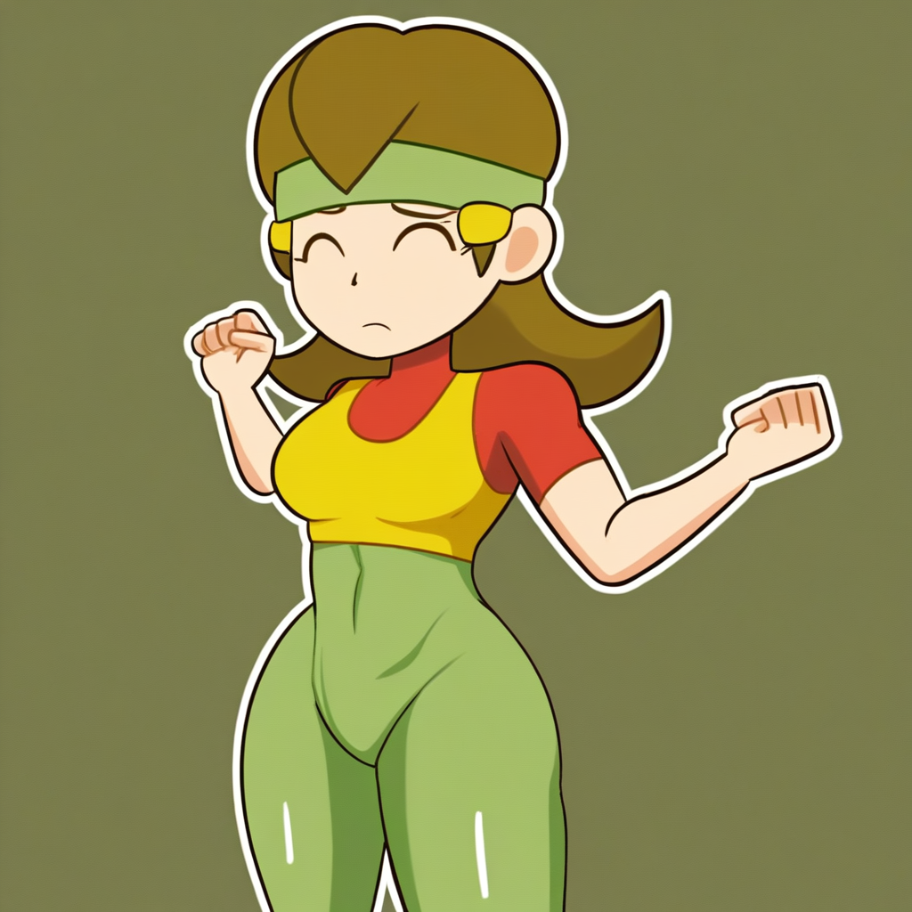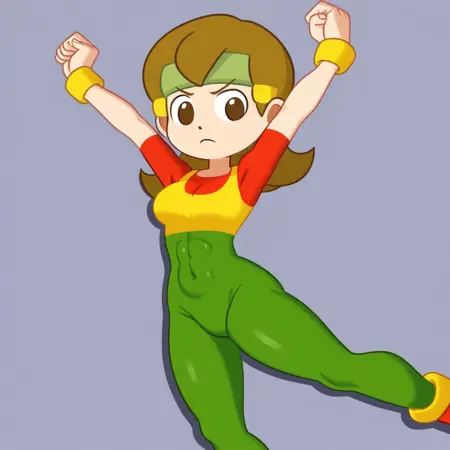 for her minus8 workout design, use green sweatband, leotard, exercise outfit