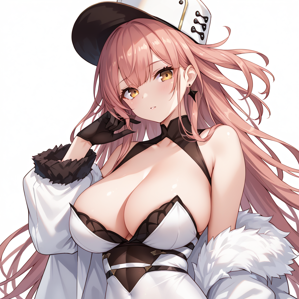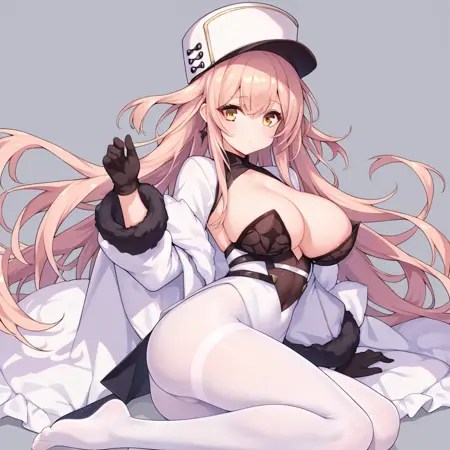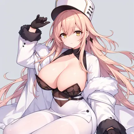 노란 눈, 모자, 큰 가슴, 흰색 팬티스타킹, 장갑