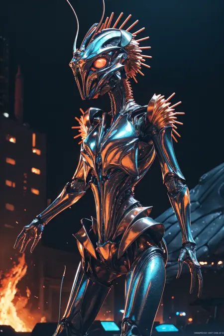 이 LoRA는 'alien'(외계인), 'District 9'(디스트릭트 9), 'OliDistrict'라는 키워드에 반응합니다. 세로 방향의 상체에 대해 훈련되었지만, 다리와 전체 신체에도 적용 가능합니다. 다만 조금 약한 편이며, 프롬프트에서 더욱 명확히 가이드해 주는 것이 필요합니다!