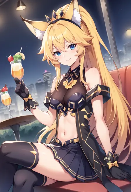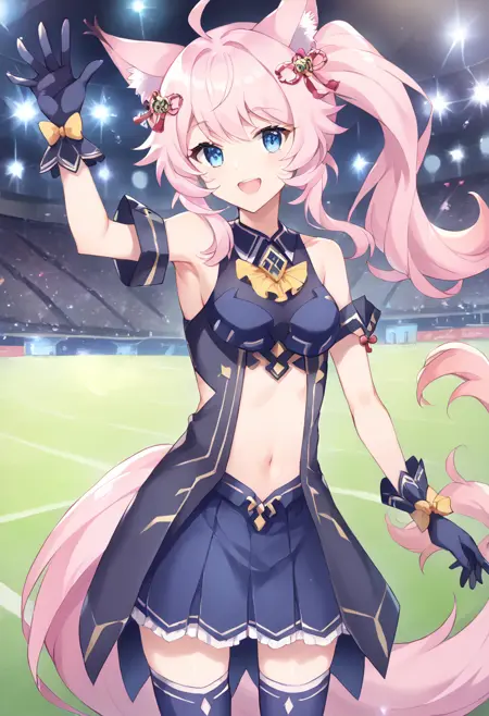 虽然她是带有尾巴的角色,但由于尾巴与头发容易冲突,因此未在提示词中加入尾巴。