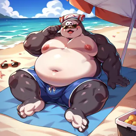 If you want the anthro big man (reference to Rendogged's design), then just add: (anthro, chubby, fat, three toes)