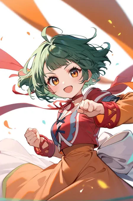 farahBase, green hair, short hair, short bangs, brown eyes,