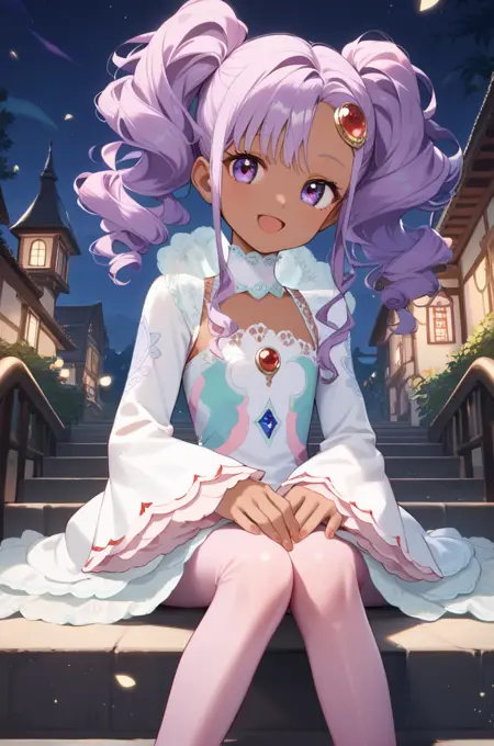 meredyBase, twintails, purple hair, purple eyes, dark skin,