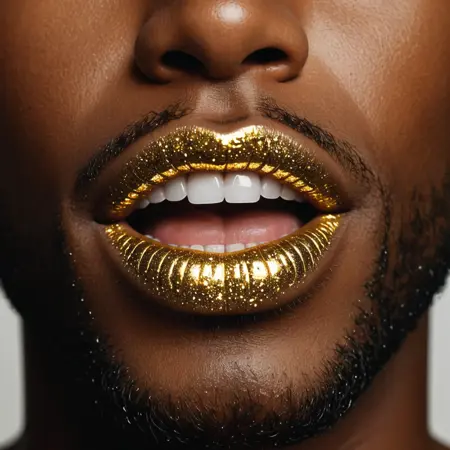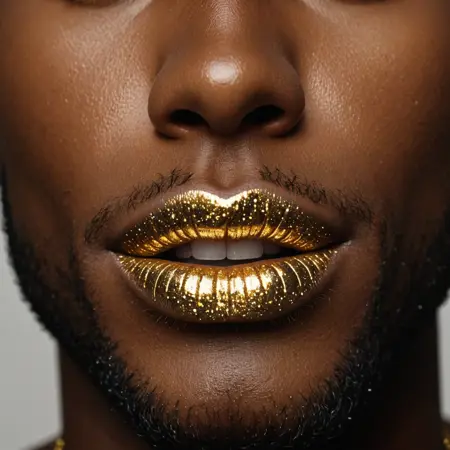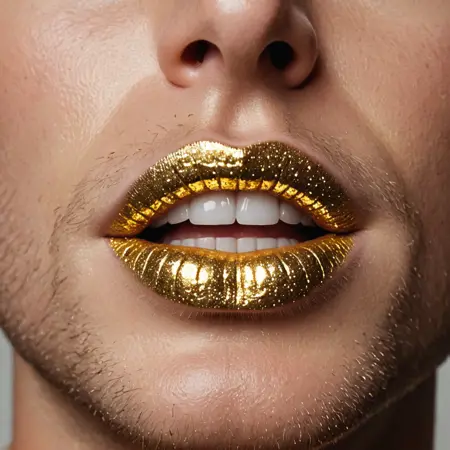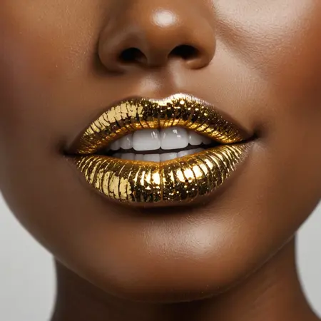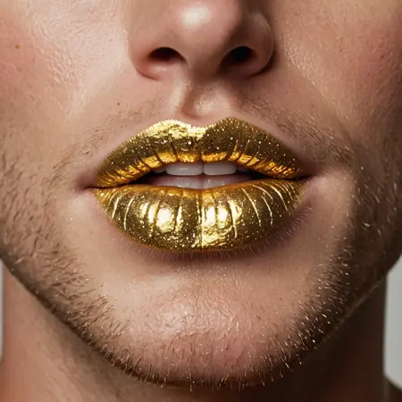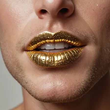 使用此 LoRA 模型为图像添加金色闪亮唇膏效果,非常适合时尚拍摄、数字艺术、美妆专题和社交媒体内容。