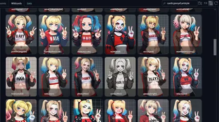 PonyDiffusionXL이 잘 이해하고 있는 원작 아티스트의 스타일이 포함되어 있으며, 일부는 직접적인 스트링이고, 다른 일부는 토큰 아래에 숨겨져 있습니다.