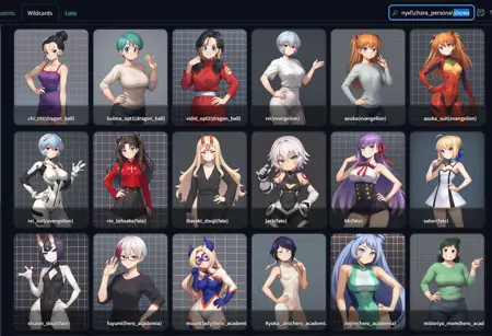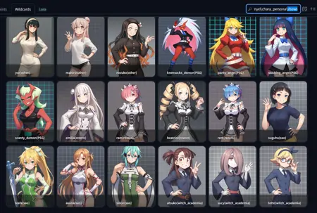 the images in the showcase are using my Wildcard Gallery extension to display wildcards as extra network library