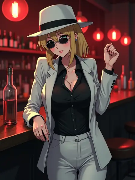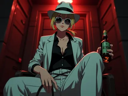 white_fedora - 베스가 외출할 때 쓰는 모자. white_blazer, black_shirt, white_pants, black_heel_shoes 와 함께 착용
