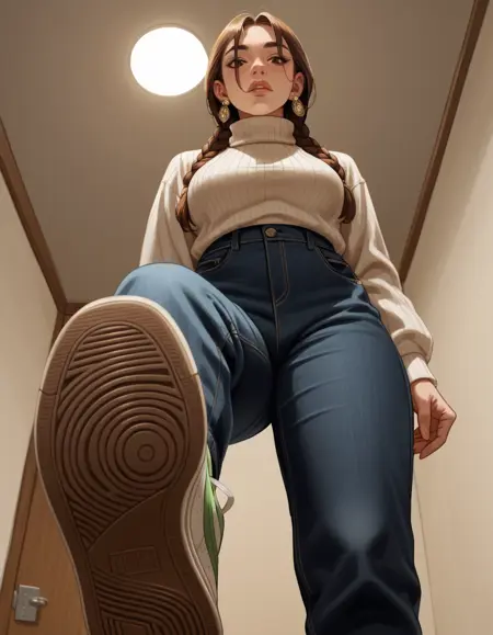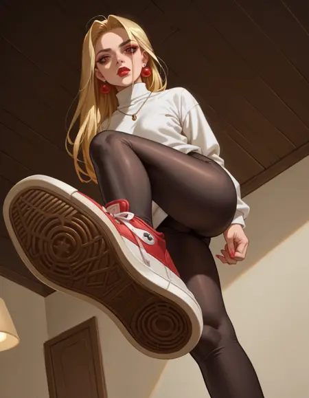 Keywords: INDOORS: hud_v4nspose, sneakers, shoe soles, from below, indoors, ceiling, foreshortening, perspective,