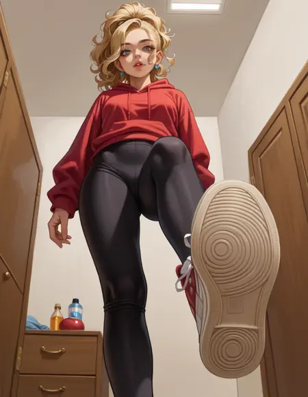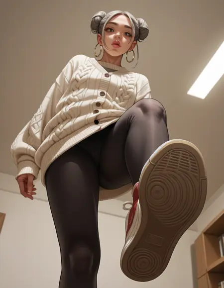 키워드: 실내: hud_v4nspose, 스니커즈, 신발 바닥, 아래서, 실내, 천장, 단축, 원근,