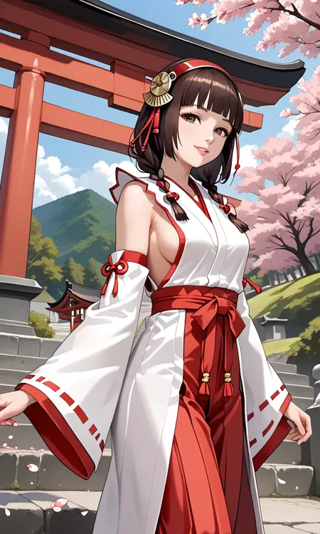 Okuni from Samurai Warriors. I know there already exists a Okuni Lora on this platform, but i'm kinda not very satisfied with the way her face look since it lacks the flirty and elegant nature that Okuni should have, so i made one my on my own.