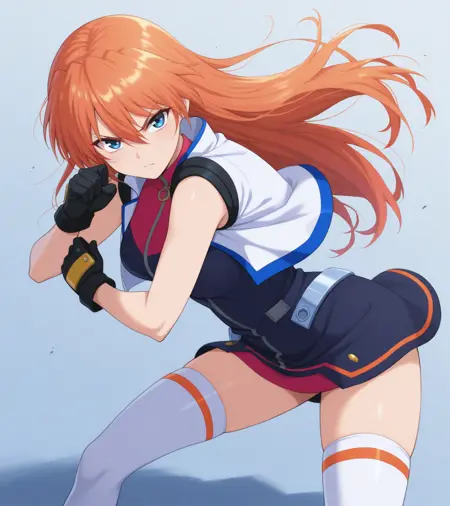 长发: solo, 1girl, TeaLanster, 橙发, 蓝眼, 长发