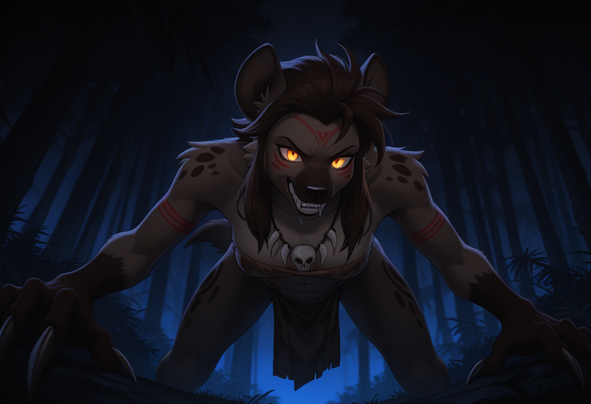 是动画剧集《石像鬼》中的主要反派角色。她是“兽群”成员,几乎总是与她的哥哥豺狼搭档行动。鬣狗与哥哥一样嗜血且心理扭曲,是“兽群”中最嗜血的成员。