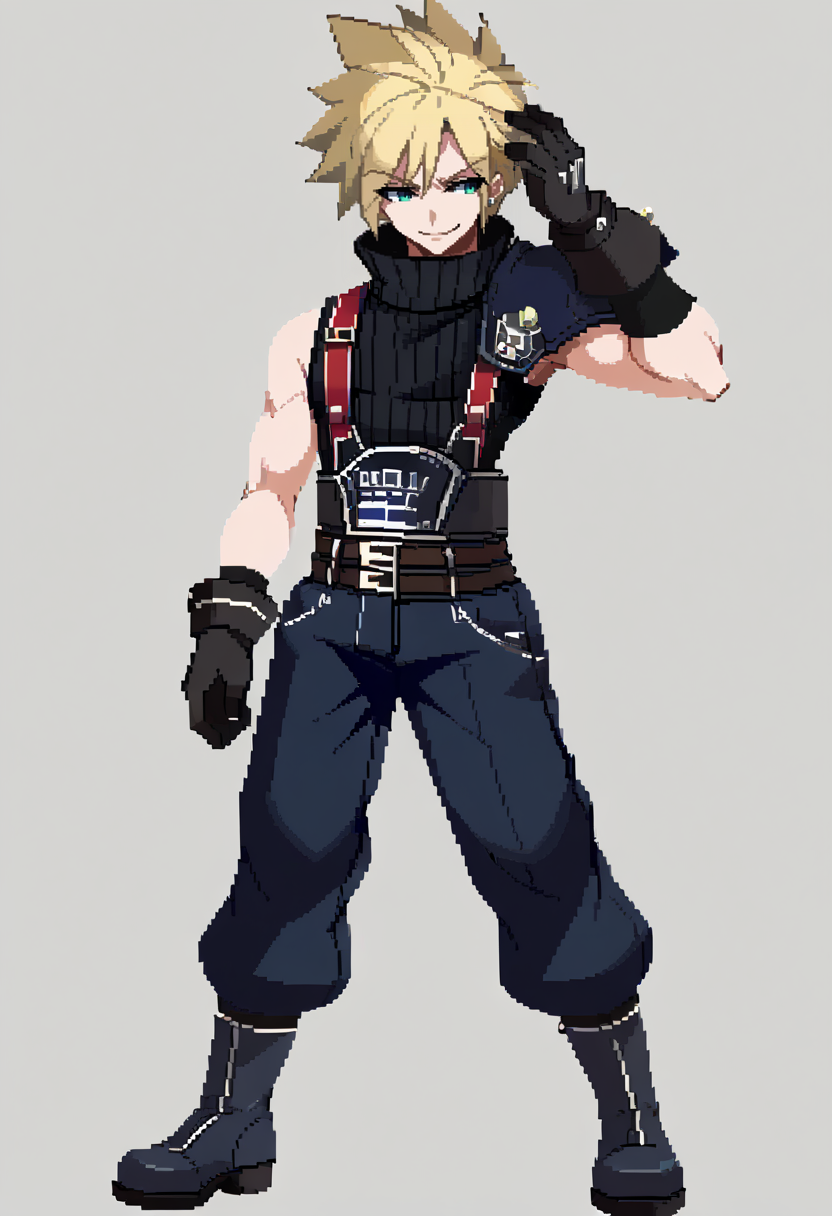 Under Night In-Birth ExeLate 스프라이트 스타일. Pony Diffusion V6 XL로 학습됨.