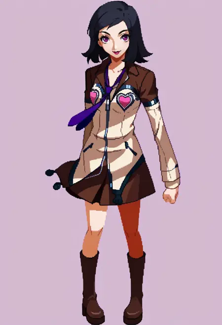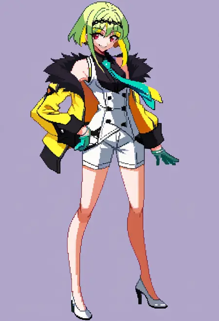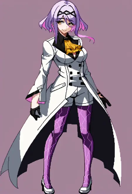 Under Night In-Birth ExeLate 스프라이트 스타일. Pony Diffusion V6 XL로 학습됨.