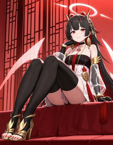 Luciasmr,ロングヘア,片側アップ,黒髪,赤目,