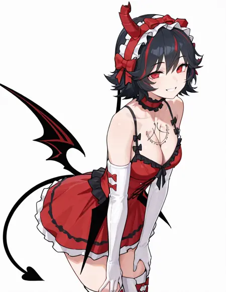ver_elbow_gloves, ver_demon_tail, ver_demon_wings, ver_frilled_choker, ver_frilled_dress, ver_frilled_hairband, ver_chest_tattoo, ver_demon_horns, 断角, ver_high_heel_thigh_boots