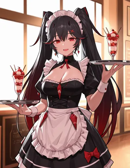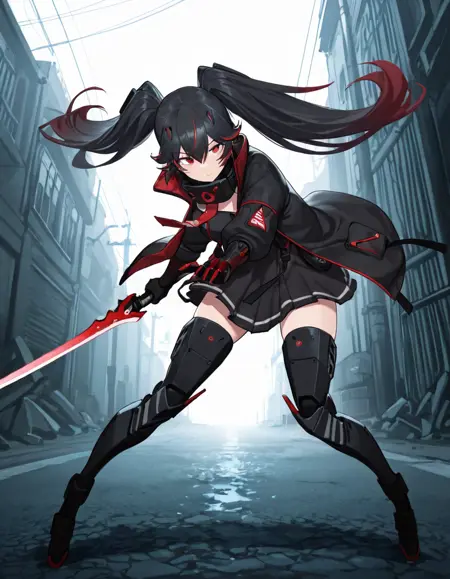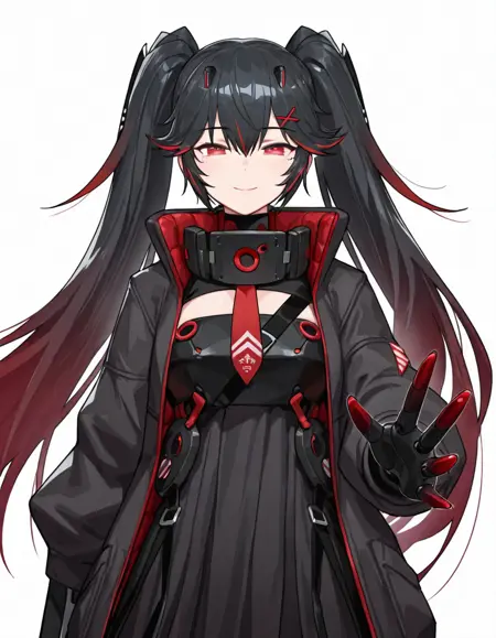 Luciadef, 长发, 双马尾, 黑发, 彩色内发, 红眼,