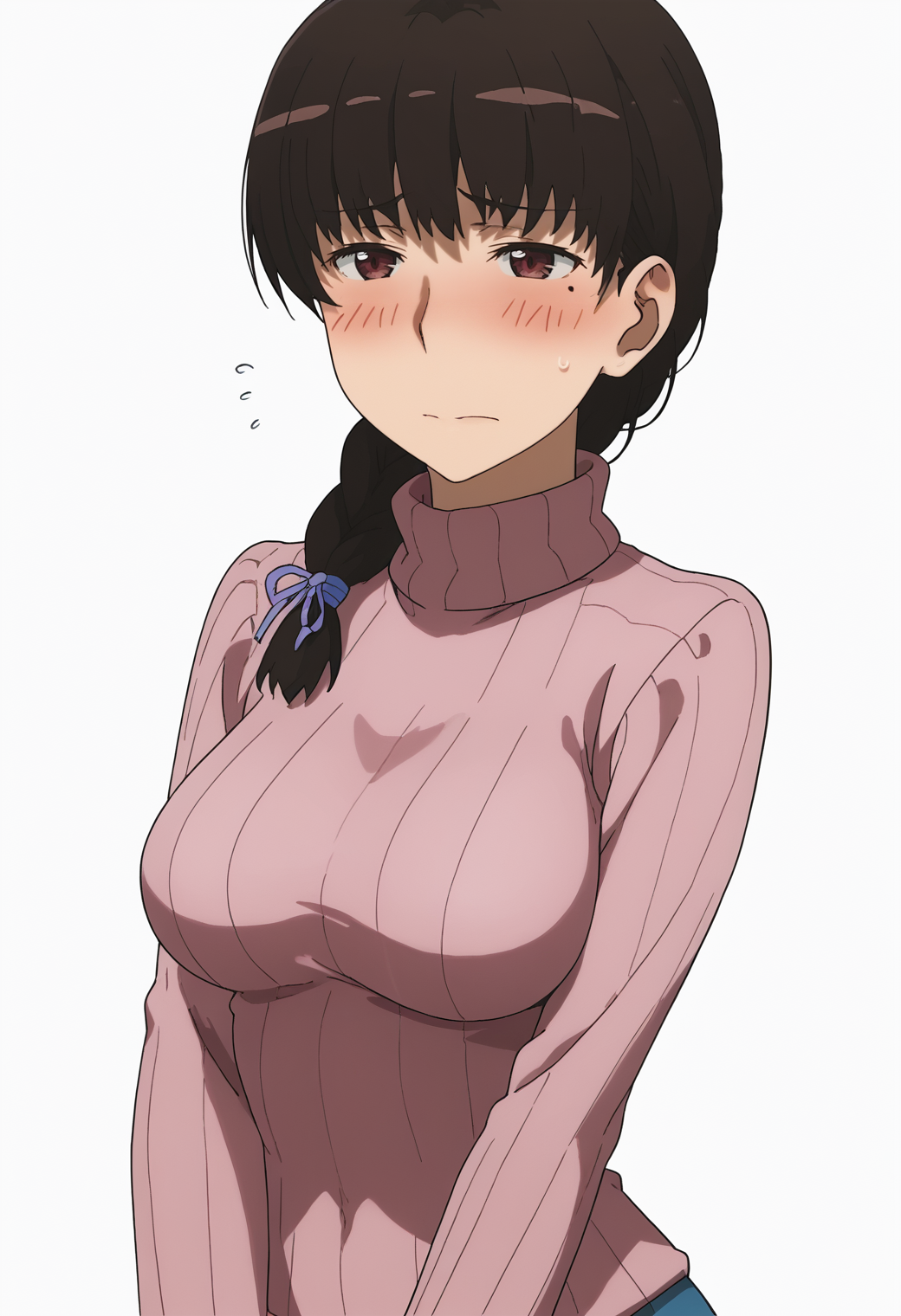 takamiya komachi, brown hair, braid, mole, brown eyes, closed eyes,
