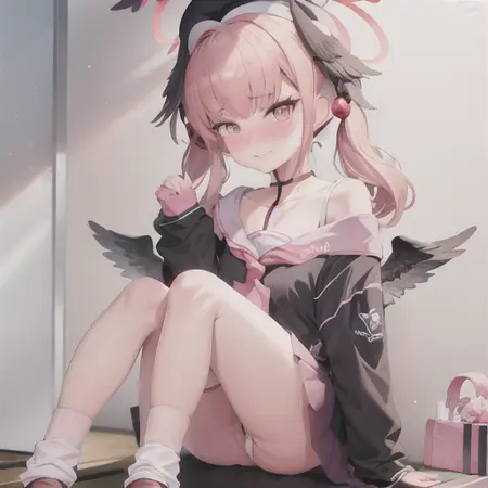 1girl, koharu, twintails, beret, halo, skirt, pink neckerchief, sailor collar