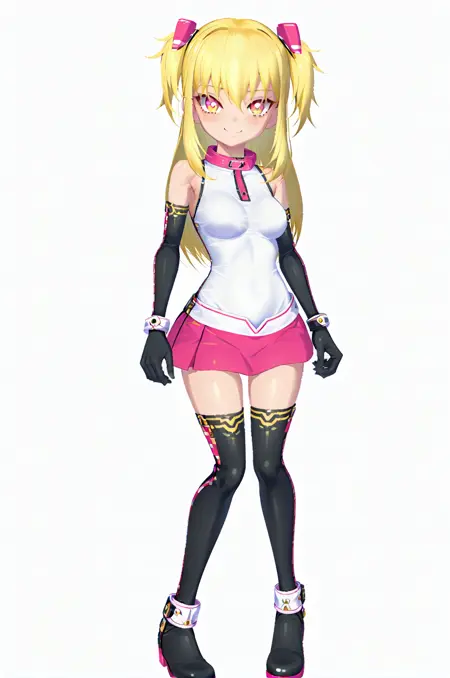 프롬프트: spikaPangya, 긴 머리, 금발, +_+, 별 모양 동공, 다색 눈, 노랑 눈, 분홍 눈