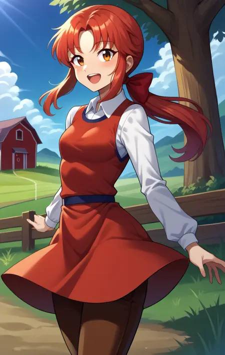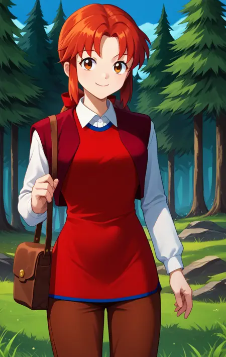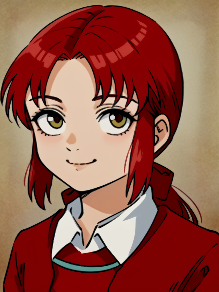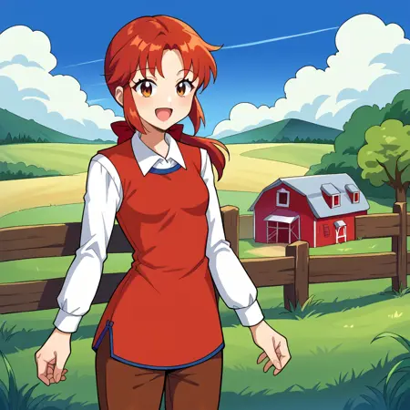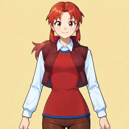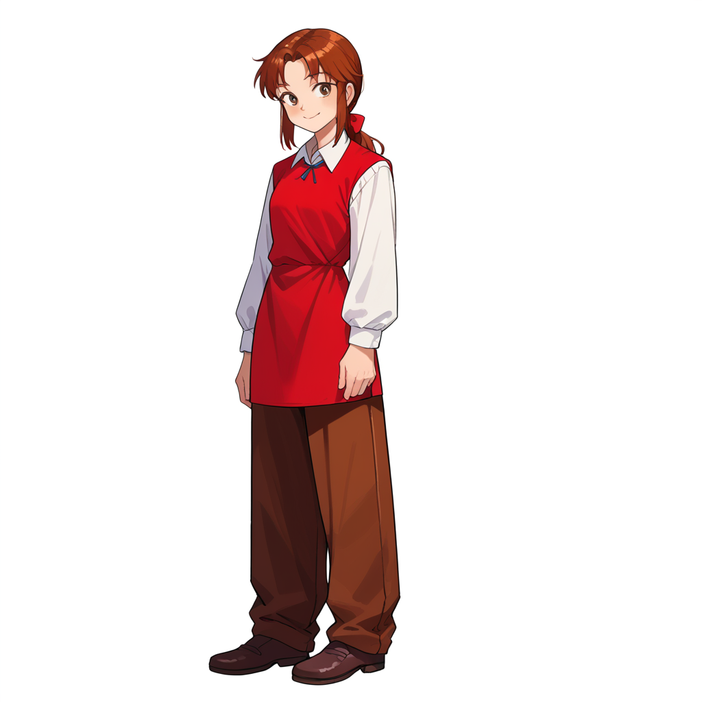 게임 아트와 일부 애니메이션 스크린샷으로 학습됨. 내 판단으로는 애니메이션 버전과 게임 버전의 차이점은 애니메이션에서는 그녀가 평소 옷 위에 갈색 조끼를 입고 있다는 점이다. 의상이 약간 혼합되기도 하고, 왜 그런지 알 수 없지만 갈색 조끼를 올바른 색상으로 나타내는 것이 훨씬 더 어렵다. 그러나 그것이 LoRA 학습의 특성이다.