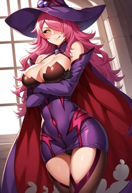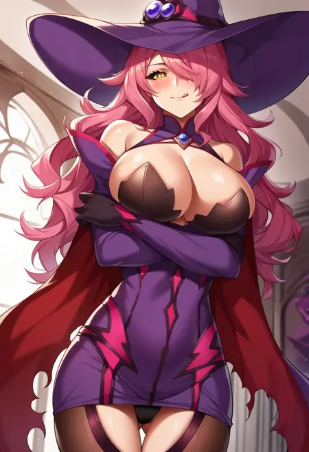| トレーニングワード | yellow eyes, black sclera, pink hair, hair over one eye, long hair, wavy hair, コピーしました! yellow eyes, pink hair, hair over one eye, long hair, コピーしました! witch hat, purple hat, slit hat, black gloves, elbow gloves, cape, magenta cape, black thighhighs, detached sleeves, bare shoulders, short dress, purple dress, detached collar, black panties,コピーしました! witch hat, white hat, green gemstone on hat, black gloves, white thighhighs, detached sleeves, bare shoulders, short dress, white dress, black necktie, choker, garter straps, pink bra, pink panties, white thighhighs, コピーしました! school uniform, white shirt, black skirt, cape, purple cape, black thighhighs, purple ribbon, black straps attached to sleeves,コピーしました! |
