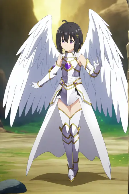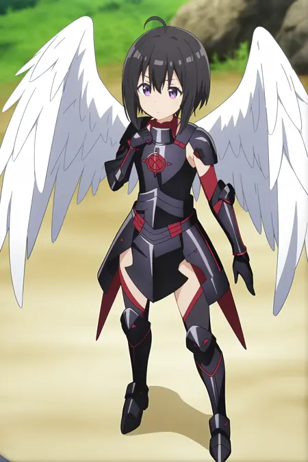 검은 머리, 보라색 눈, 금발, 파란 눈, 흰 날개