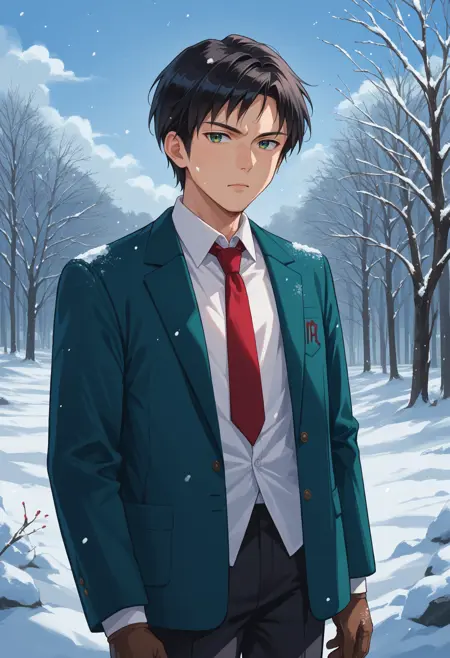 KitaHighMaleWinter, green blazer, long sleeves, white collared shirt, red necktie, black pants