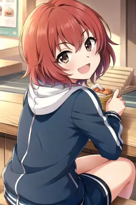トリガー単語: murakami tomoe、赤髪、短髪、茶色の目