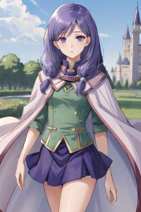 約0.8の重みが効果的です。トリガー語は「ilyana fe」です。彼女のデフォルトの衣装として、「緑のシャツ」「紫のスカート」「ケープ」「リボン」を追加することを強くお勧めします。