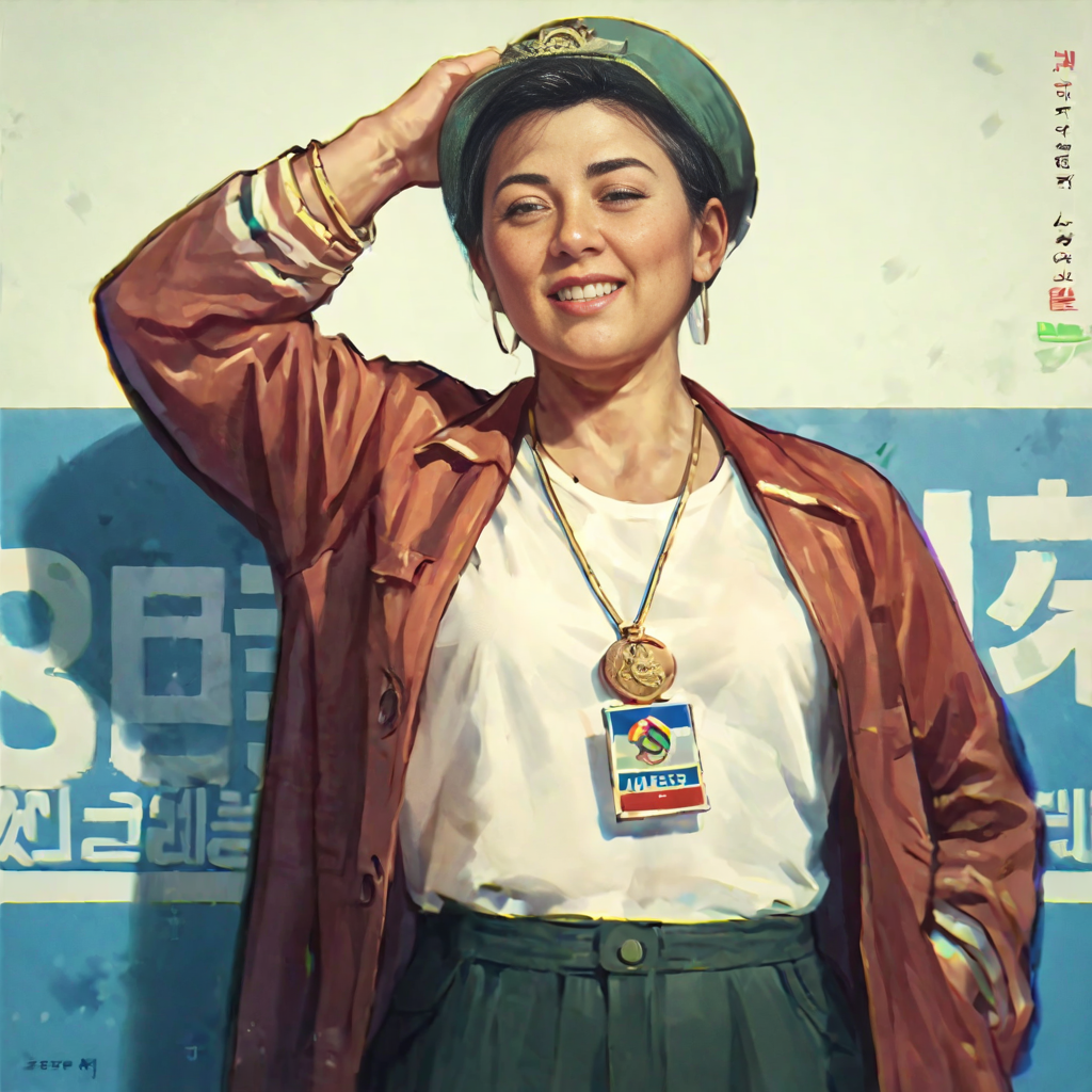 使用多件朝鲜艺术作品进行训练。遗憾的是,对朝鲜文字或朝鲜国旗的生成效果不佳。