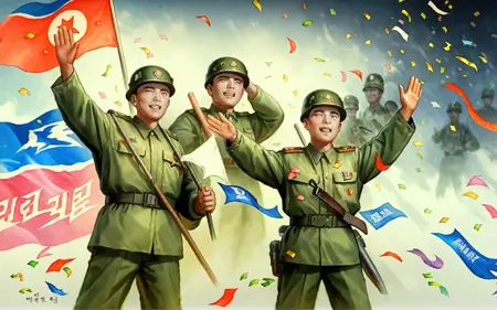 北朝鮮の複数の芸術作品で学習されました。ただし、韓国語のテキストや韓国の国旗にはあまり得意ではありません。
