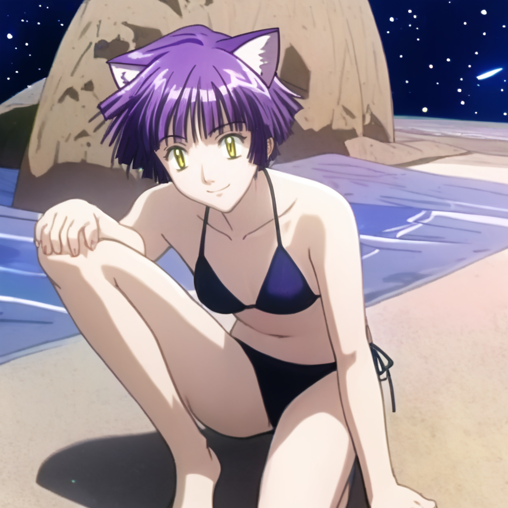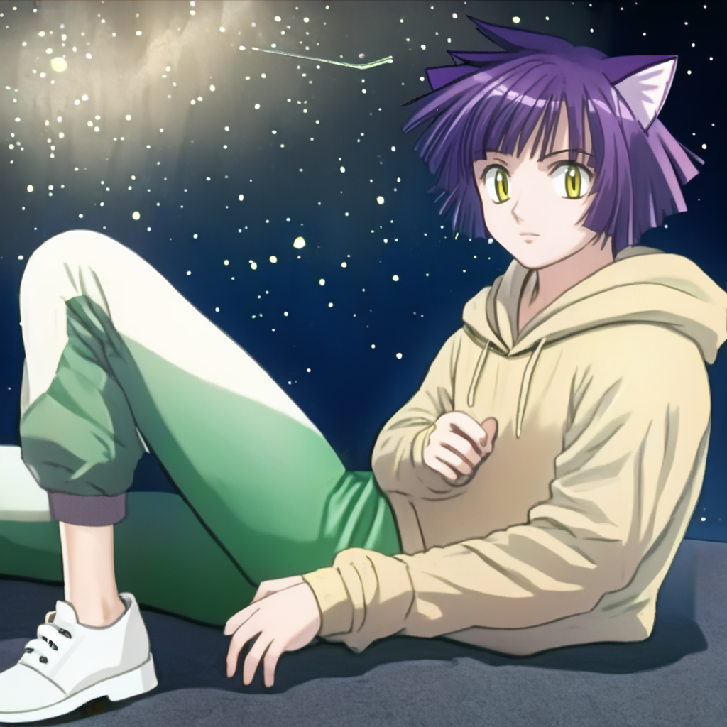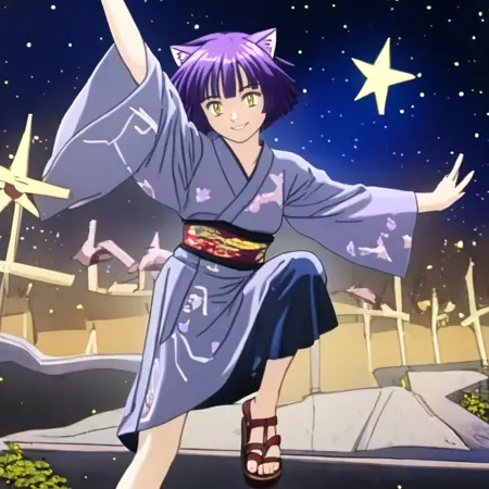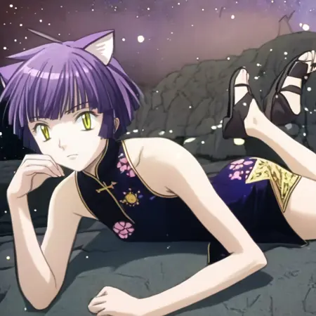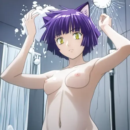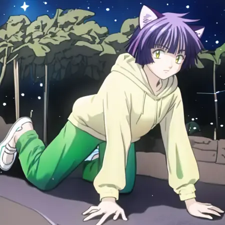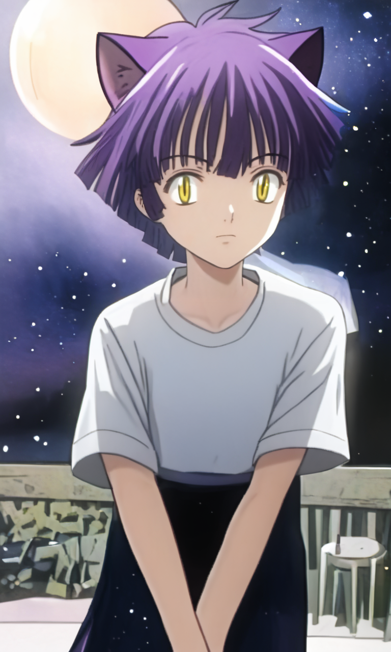 aimyoujin, yellow eyes, purple hair, short hair, cat ears,