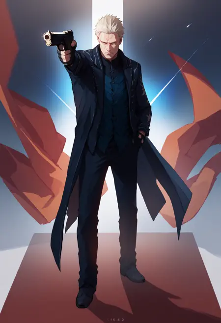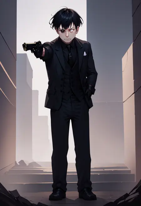 holding weapon, holding gun, handgun, hand in pocket, aiming