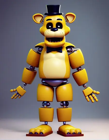 | Trained Words | golden_freddy, solo, looking at viewer, 1boy, hat, standing, full body, male focus, bowtie, no humans, black bowtie, robot, robot joints, mini hat, top hat, furry male, mini top hat, black selcra, white pupils, yellow fur, gold fur, Copied! |