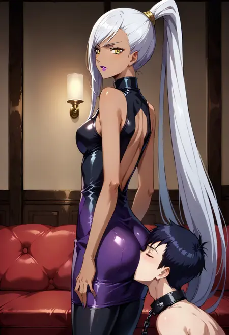 ass kissing, femdom, 1girl, dominant girl, 1guy, submissive guy,