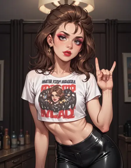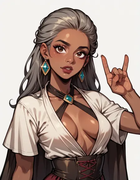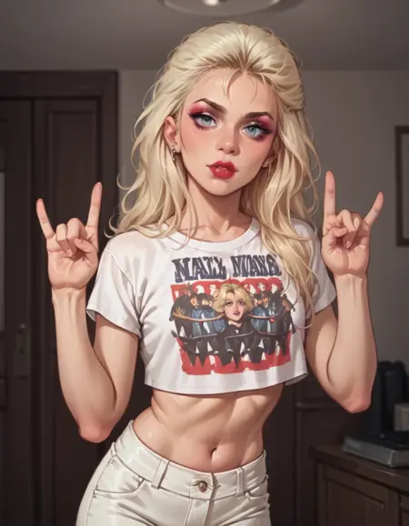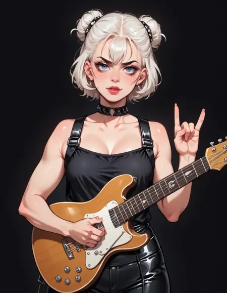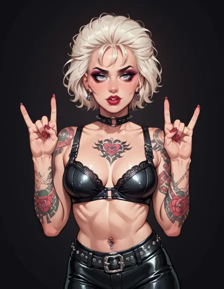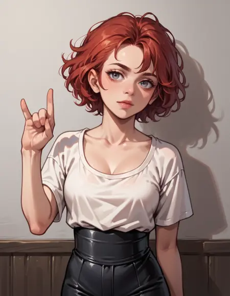 关键词: hud_m3tal_h4nds, 1girl, 手臂上举, \m/, 上半身, 影子木偶(可以省略,但可能无法立即获得正确的手势效果)