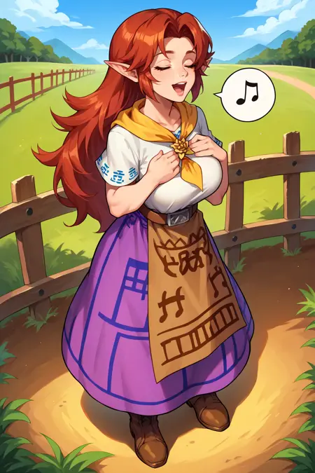 Adult Malon from The Legend of Zelda: Ocarina of Time, or Cremia from The Legend of Zelda: Majora's Mask. Trained on Pony Diffusion V6 XL. Tested at 0.8-1.0 strength.