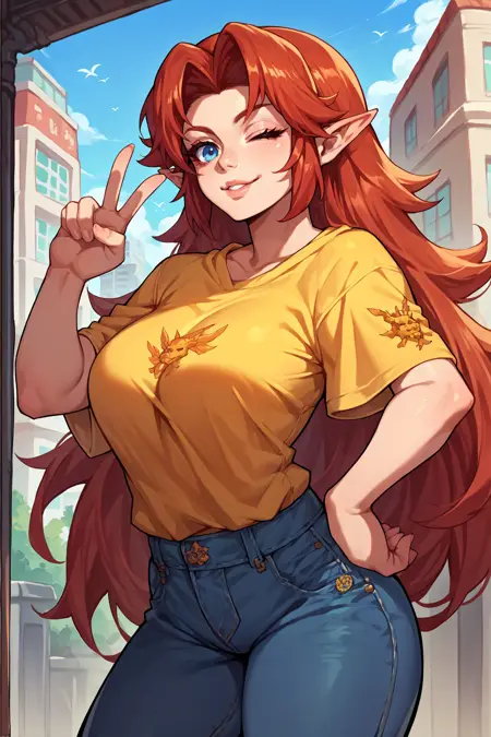 Trigger word is "cremia" and "red hair, long hair, pointy ears" is required.