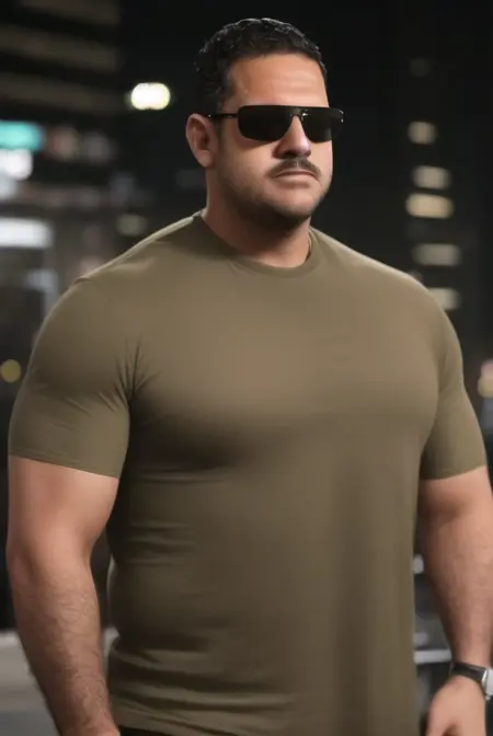有用标签:通用 - 面部毛发,黑发服饰 - 短袖,棕色衬衫,T恤,单肩搭毛巾,毛巾