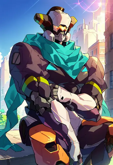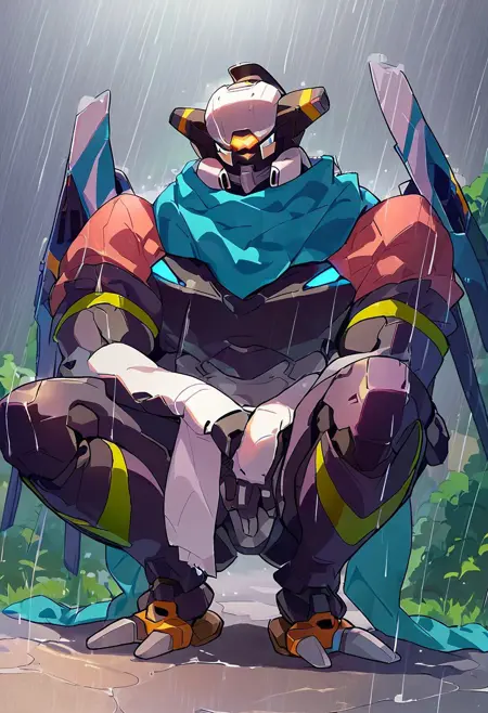 触发词:zanntetsu、robot、mecha、scarf、summer-version、glowing_loincloth