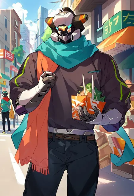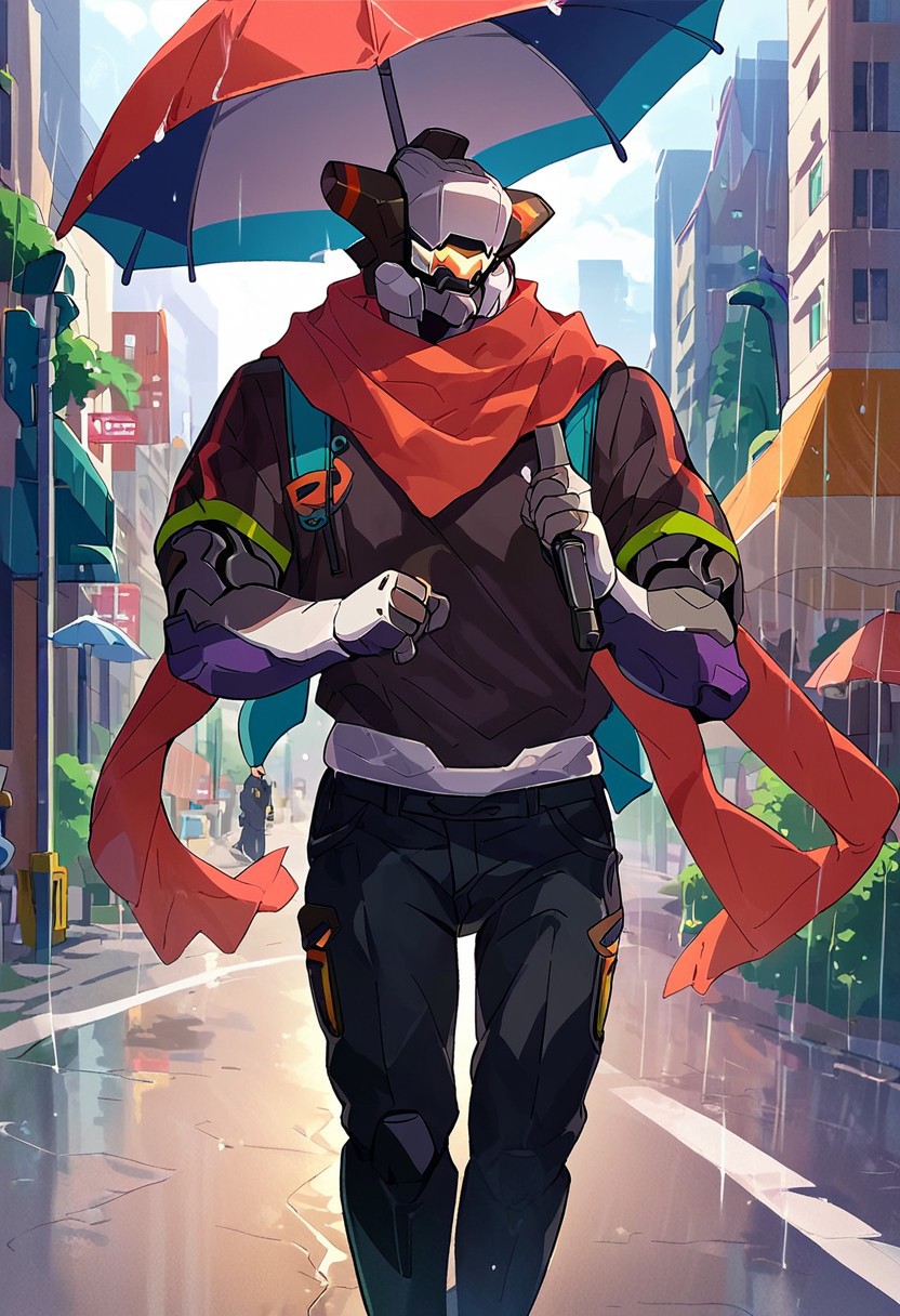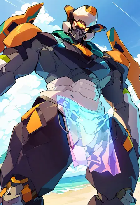 トリガー語: zanntetsu, robot, mecha, scarf, summer-version, glowing_loincloth