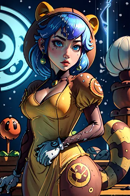 The Main triggerword is (Tanooki:1.2). I recommend using more weight on this like (Tanooki:1.4). This LoRA most of the time combines the main Outfit from the Character with Tanooki Outfit. This was trained only on 20 images, so it can break easy. You also need the helping prompt.