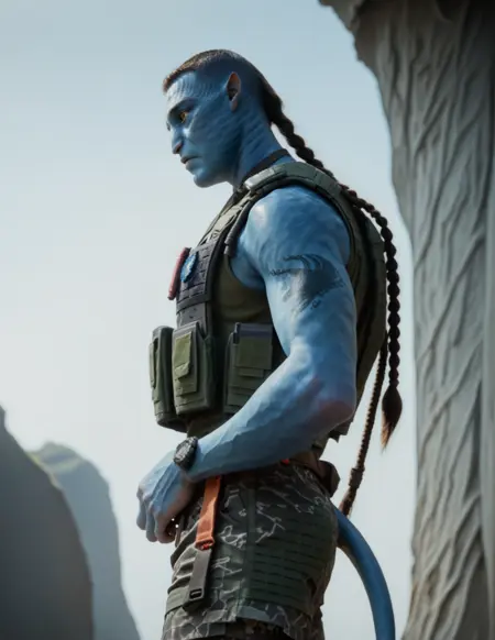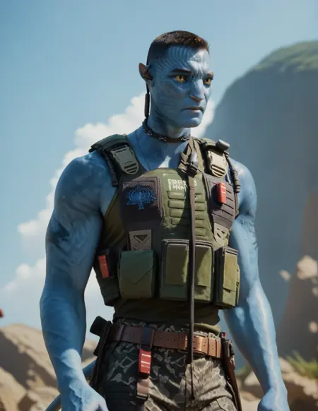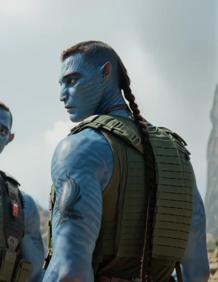 スティーブン・ラングが演じる映画『アバター 水の道』のキャラクター、マイルズ・クアリッチの画像で学習されました