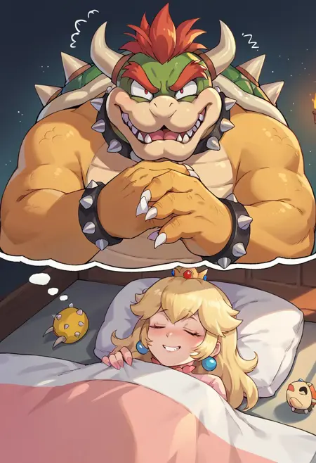 Example: score_9, score_8_up, score_7_up, source_anime, dreaming, dreaming of, sleeping, futon, under covers, solo, woman, smile, closed eyes, dreaming of object, dreaming of flowers