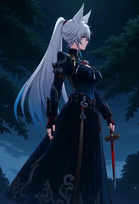 트리거 단어는 "Feixiao"입니다. 핑거 버전에서 다른 트리거(하얀 머리카락, 빨간 아이라인, 코트, 반바지)를 사용할 수 있습니다.
